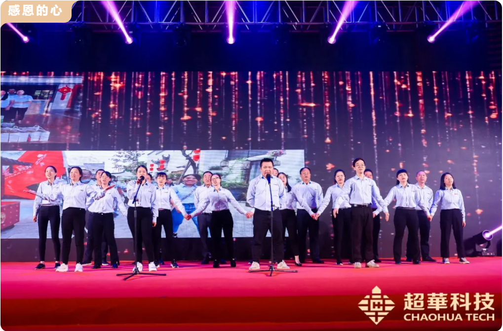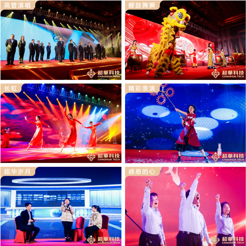 在晚宴期間,還開展了豐富多彩的文藝演出,醒獅鼓振奮人心,舞獅子神采奕奕,整個氣氛熱烈歡騰,意示著2022年超華科技虎虎生風。而《眾人劃槳開大船》的節目,各位高管演唱熱情非常,把整個慶典的氣氛推向了高潮。熱辣的舞蹈串燒,帶動了現場的歡快氛圍,《長虹》節目的震撼,讓人嘆為觀止,更寓意著公司股票長紅,高升不斷。最后由員工代表演唱的《感恩的心》,更是表達了全體員工與公司的深厚感情,為現場新添了溫馨的氛圍。