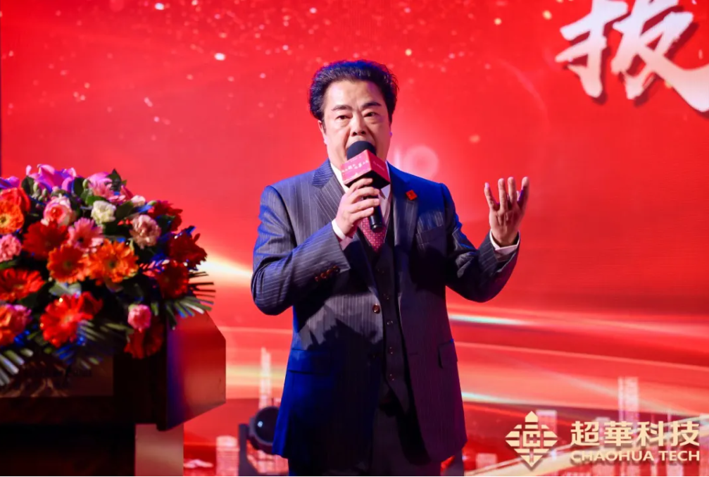 隨后董事長梁健鋒先生回顧了過往三十年的創業歷程,并對2021年所取得的成績作出了充分的肯定。特別贊賞了廣西超華項目全體超華人專業水準與拼搏進取的精神。最后董事長梁健鋒先生提出了超華科技要成為具有先進的工業體系及不受制于人的工業產業鏈的民族企業。更強調了超華科技將持續為民族的偉大復興事業作貢獻,賦予了此次慶典重要意義。
